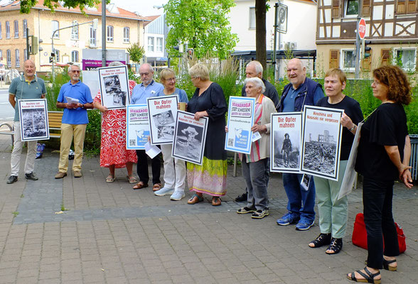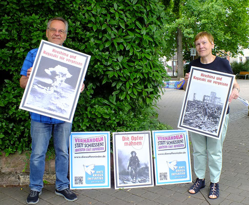 Unsere Bilder: Die Antikriegsinitiative Mörfelden-Walldorf gedachte der Opfer von Hiroshima und Nagasaki und warnte vor einer Eskalation der neuen Kriege.