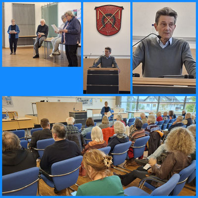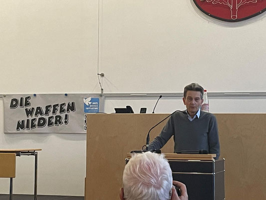 Am 1. März 2024 fand die erste Veranstaltung der Antikriegsinitiative im Bürgerhaus Mörfelden statt. Uwe Hiksch, Mitglied im Bundesvorstand der Naturfreunde, war zu Gast.
